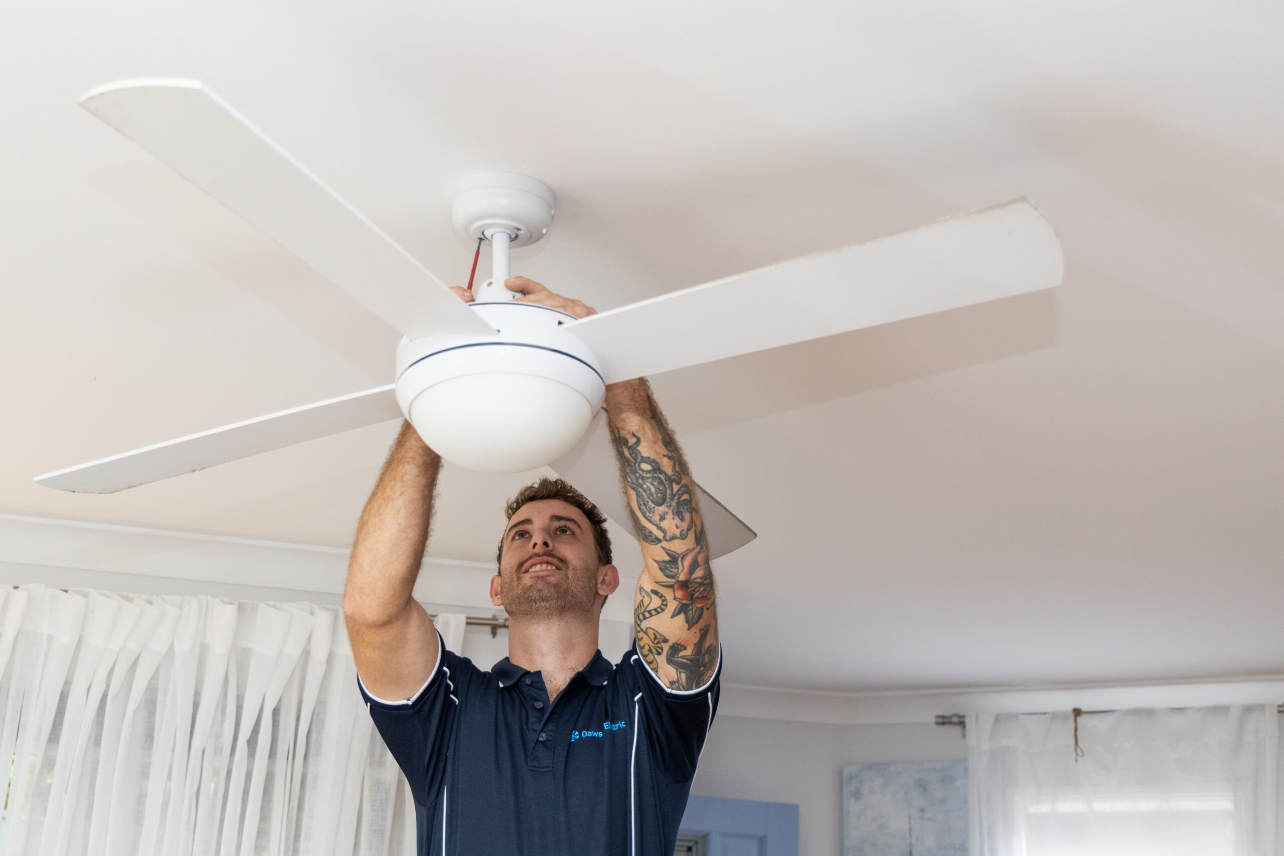 At Dawson Electric we are ceiling fan installation Brisbane wide experts. Since 2007 we have installed thousands of ceiling fans in Brisbane. Our licensed Brisbane electricians offer free advice on ceiling fan types and placement. Installing or replacing ceiling fans is often a more affordable option than air conditioning and is also more energy efficient.
